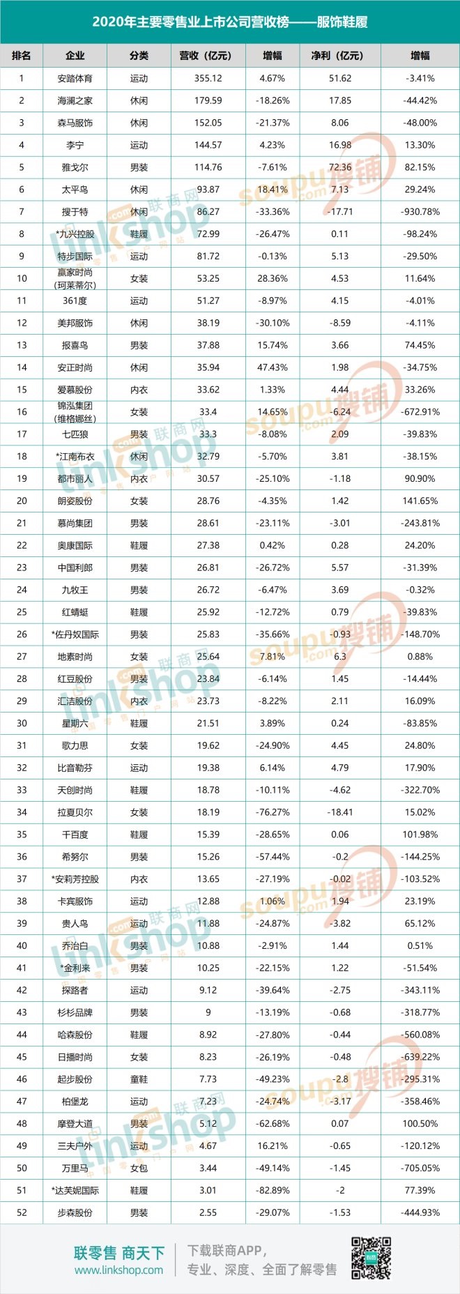 2020年服飾行業(yè)整體表現(xiàn)如何?聯(lián)商網(wǎng)零售研究中心選取了國內52家服飾鞋履上市企業(yè)2020年財報來一探究竟。