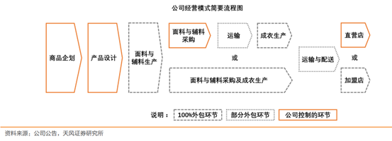 美特斯邦威品牌的前身是董事長周成建建立的服裝小工廠,創立美特斯邦威品牌之后,周建成的選擇是砍掉工廠,生產環節100%外包,只保留幾個核心環節,轉型輕資產。